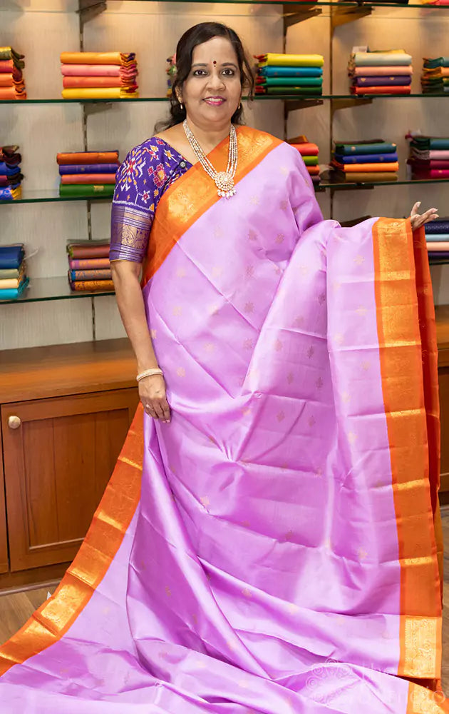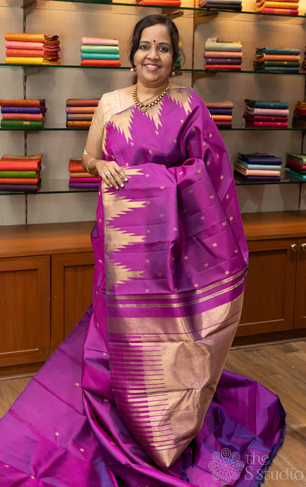 Violet kanchi silk saree with deer buttas (Pre-order available) Violet kanchi silk saree with deer buttas (Pre-order available)