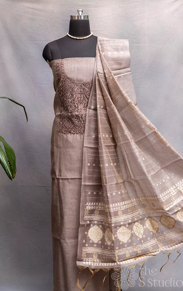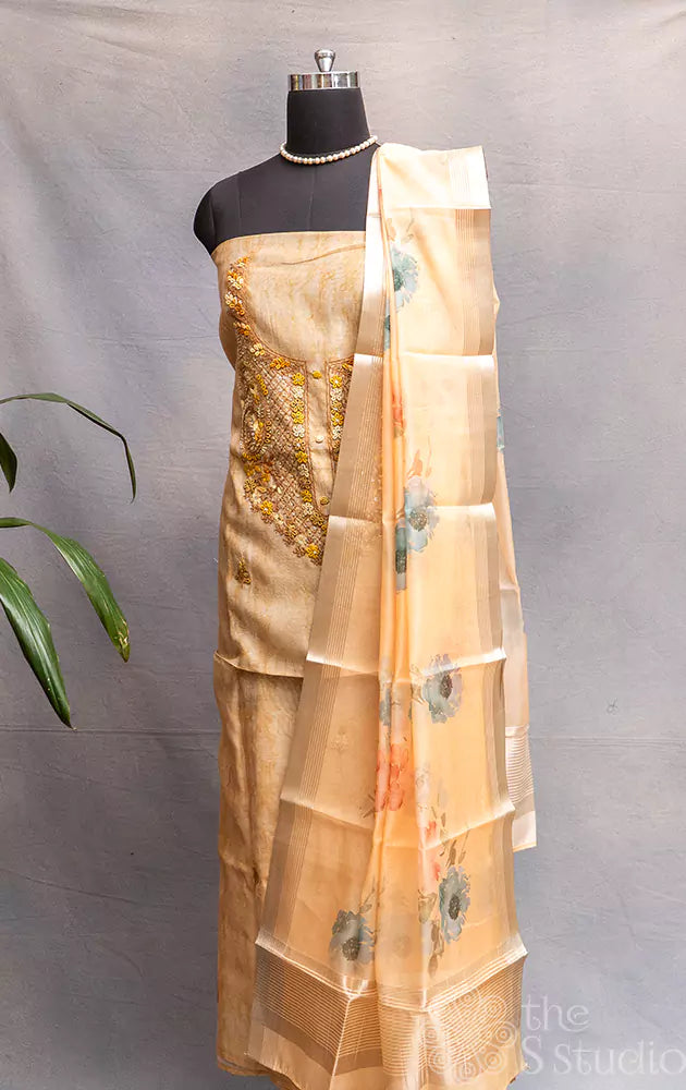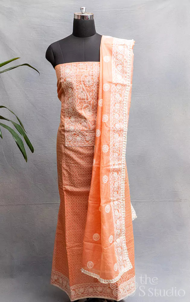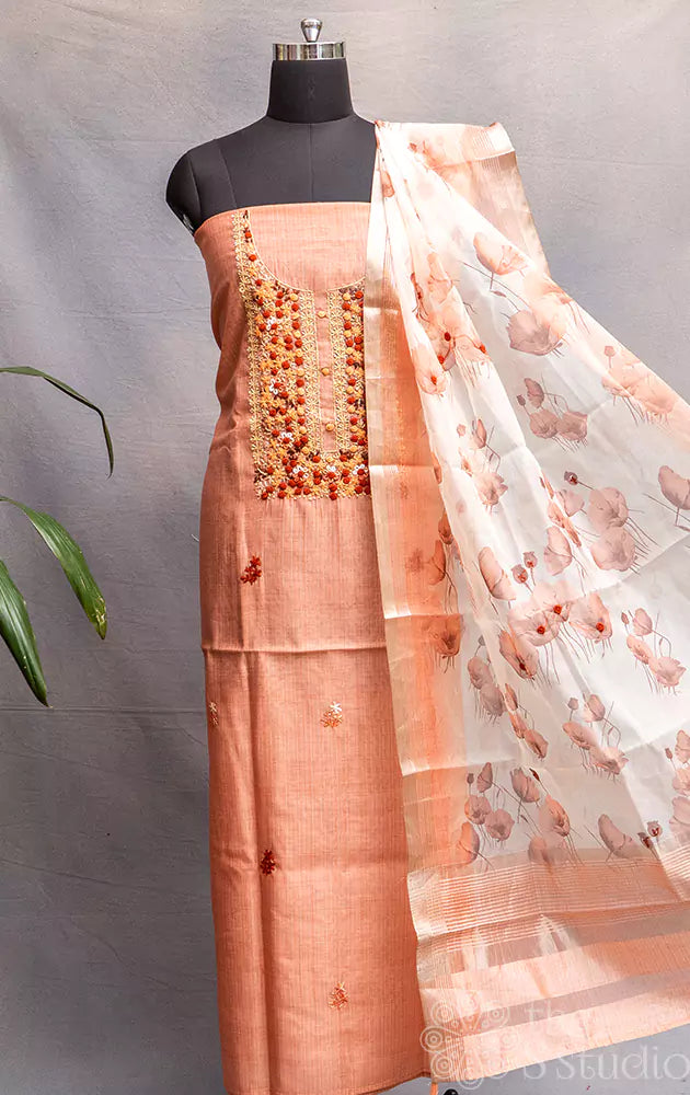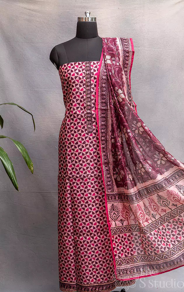 Onion pink chanderi cotton salwar suit with embroidered dupatta