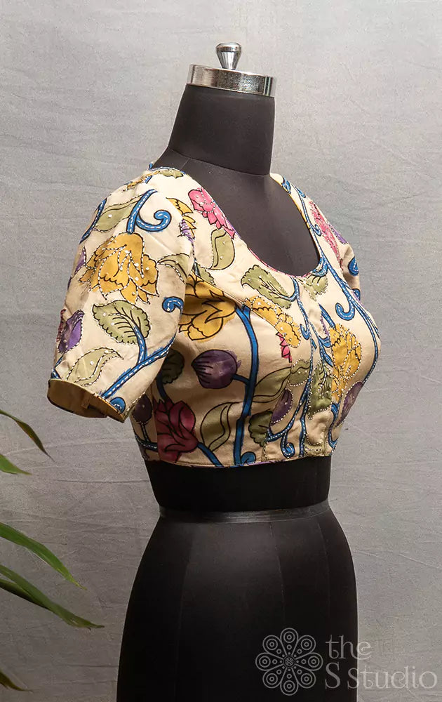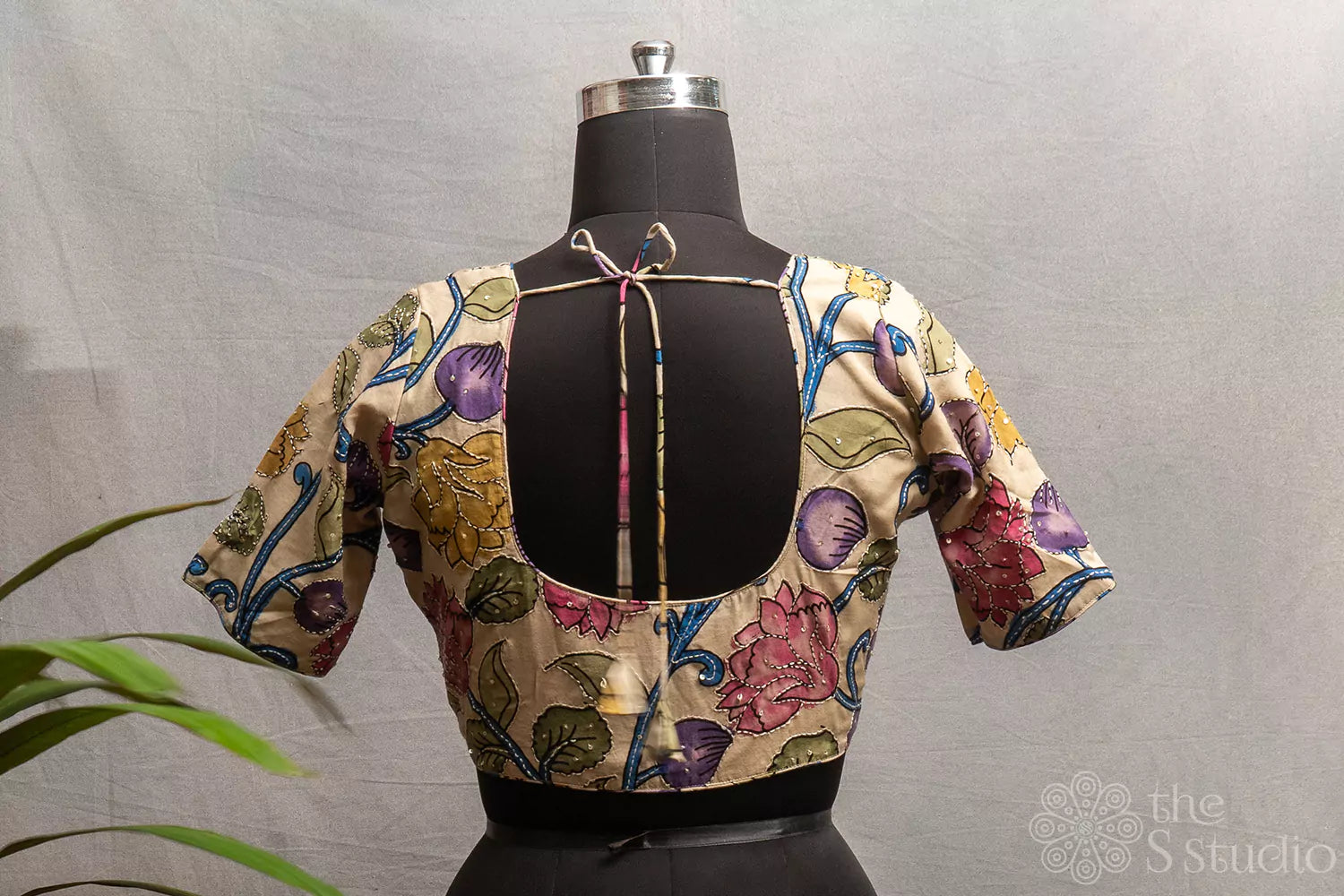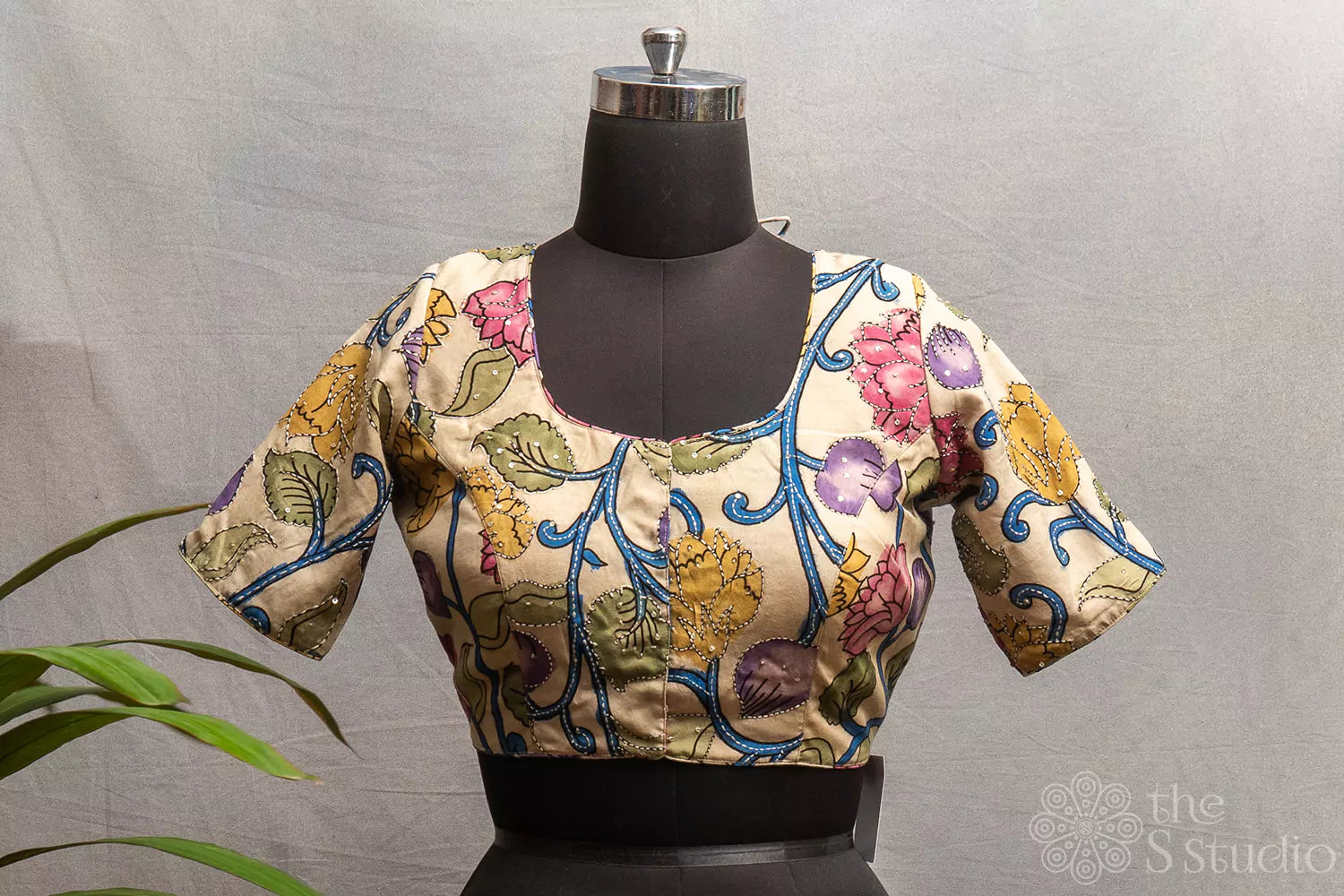 Note:All readymade blouses have margins inside and they can be made one size smaller or bigger.