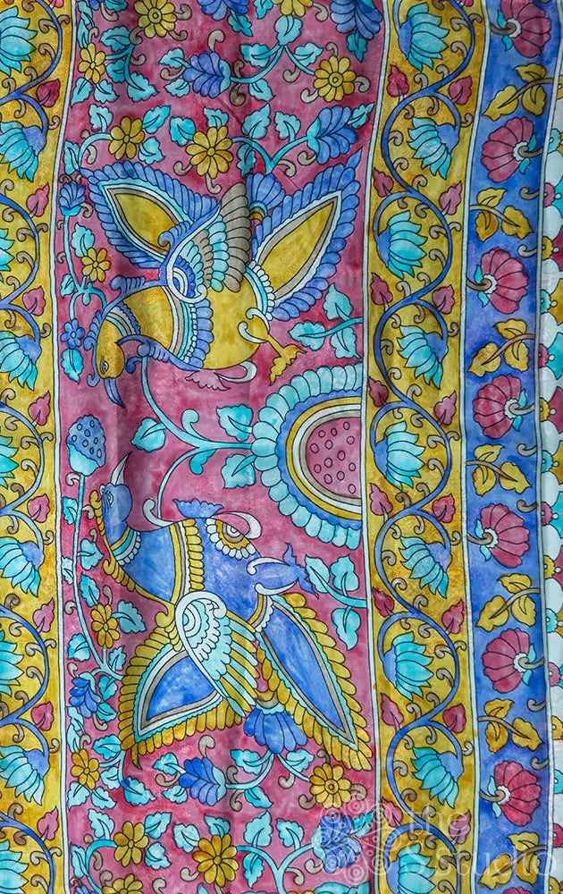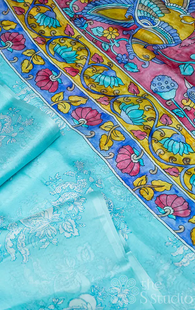 Light Blue Organza Saree with Handpainted Kalamkari Pallu