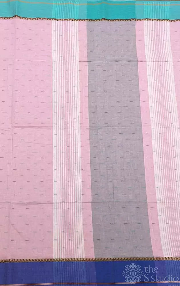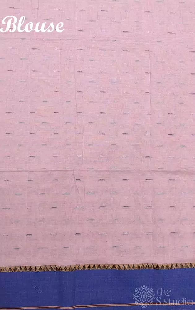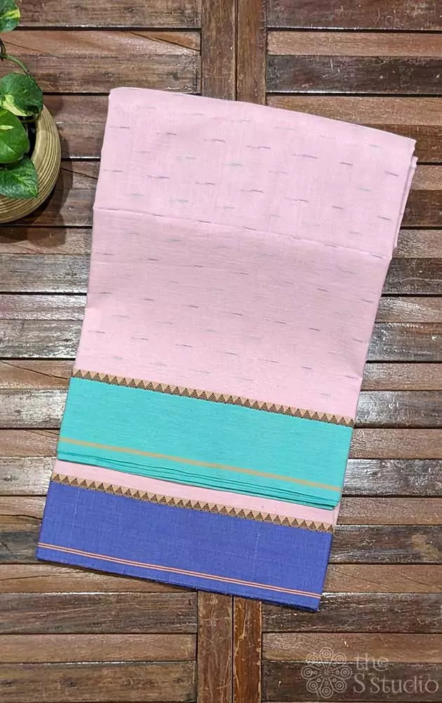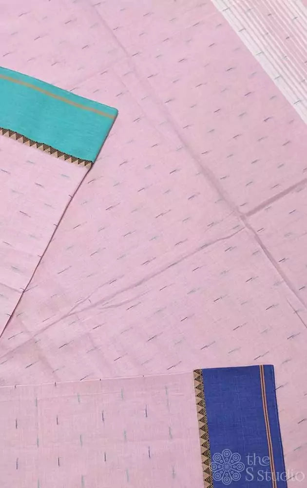 Light pink bengal cotton saree with ganga jamuna border. This lightweight saree is perfect for any causal occasion.