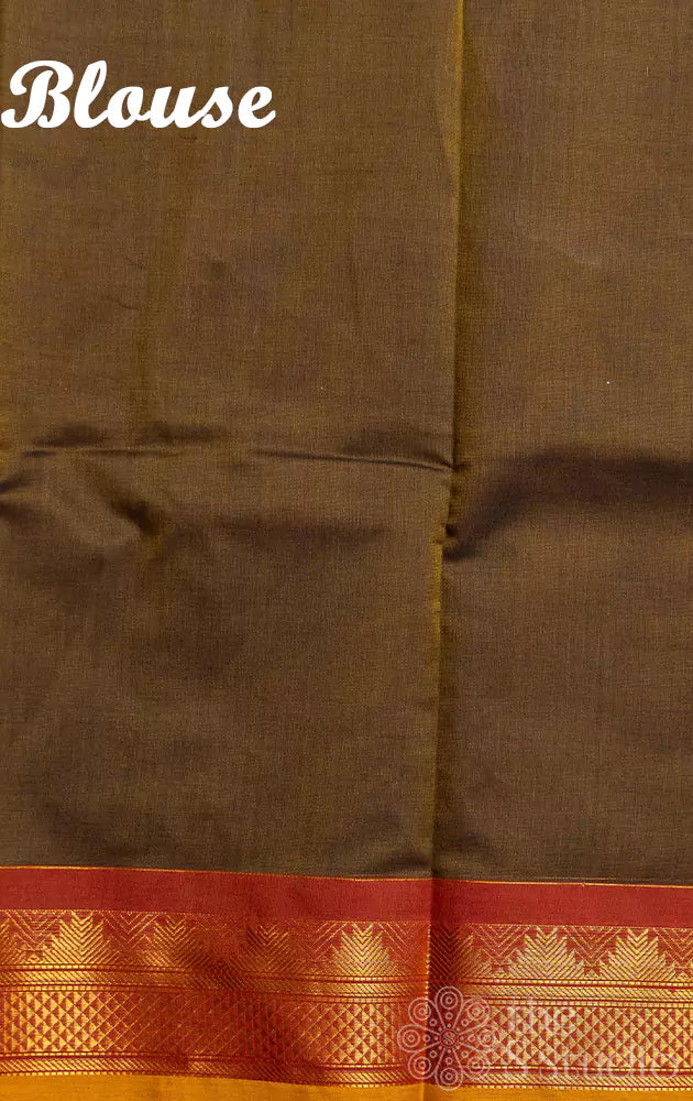 Methi green handloom kanchi cotton saree with grand pallu and red border