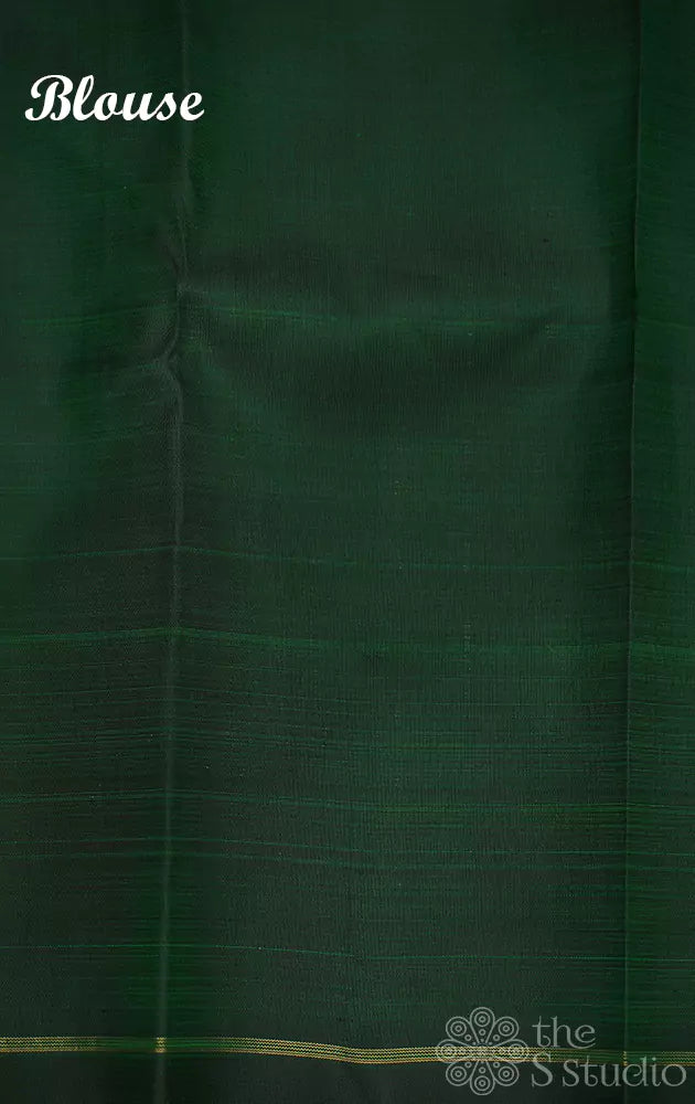 Blouse: Bottle green colour blouse attached