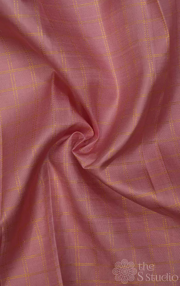 Onion pink zari checked kanchi silk blouse fabric