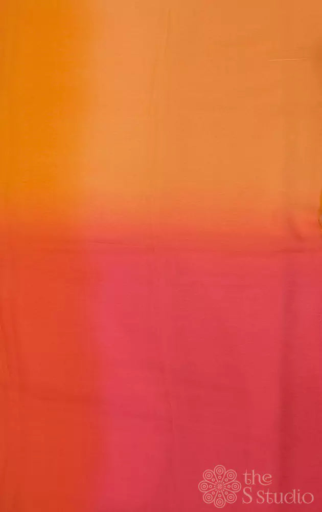 Orange and red chiffon saree comes with maroon raw silk blouse making it a perfect choice for causual day out.