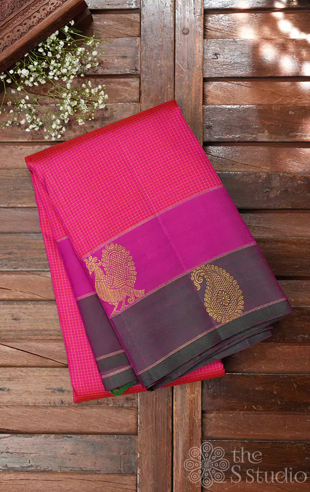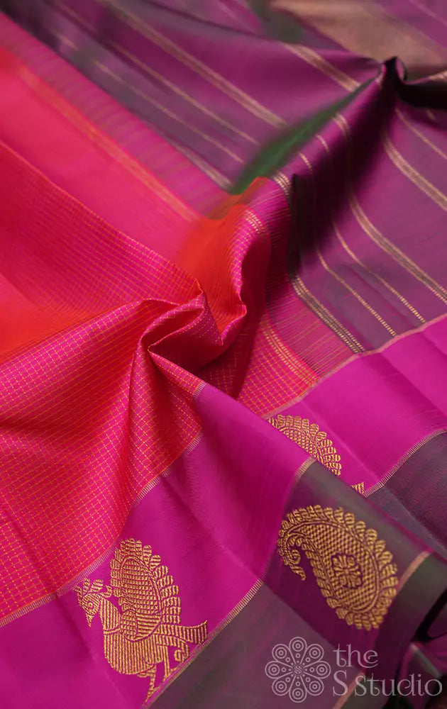 Peacish pink kanjivaram silk saree with double border