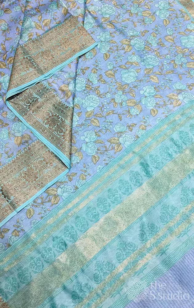 Powder blue chanderi cotton saree with antique border