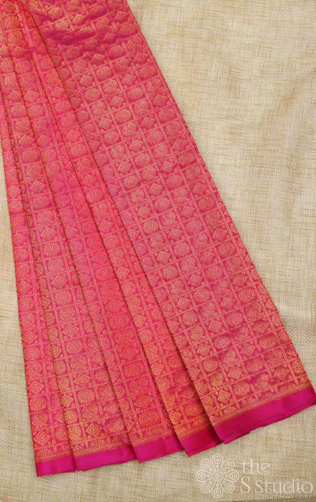 Rani pink kanchi silk blouse material with mayil chakram buttas