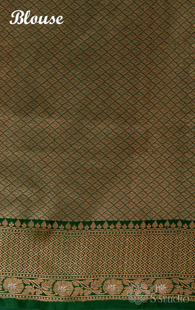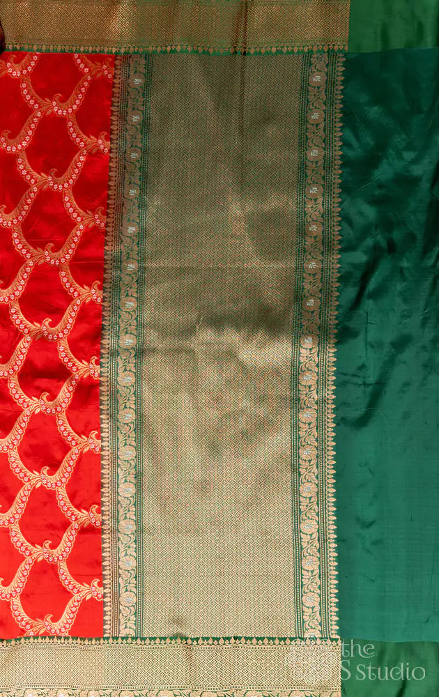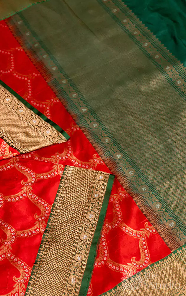Red banarasi silk saree with green antique zari border