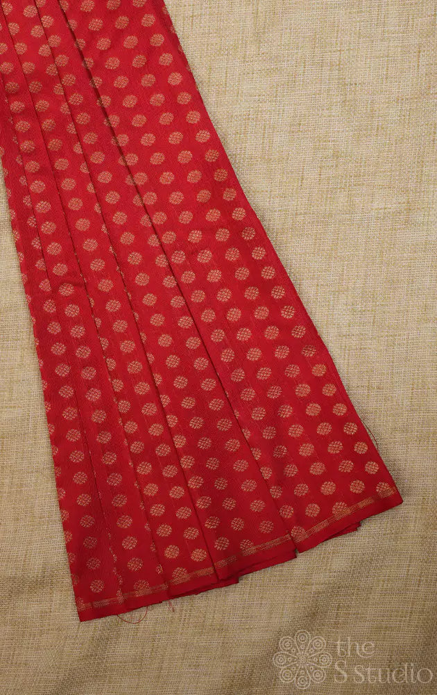 Red kanchi silk blouse fabric with kamalam motifs