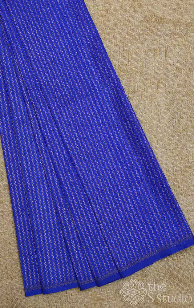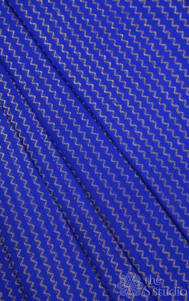 Royal blue kanchi silk blouse material with zig zag vanki zari lines