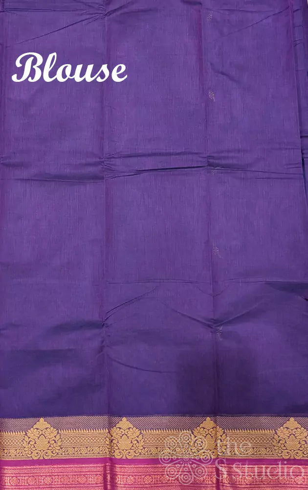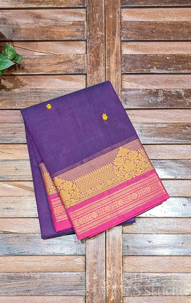 Violet kanchi cotton saree with rani pink zari border
